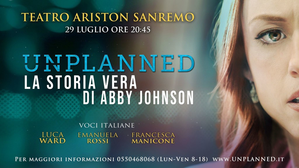 Federica Picchi fondatore di ‘Dominus Production’ e distributore del film per l’Italia ha dichiarato: “Unplanned è un film vero, forte, emozionante. È una storia unica che abbraccia punti di vista di vista diversi e favorisce una grande apertura mentale. Sono felice di portare all’Ariston, simbolo della cultura divulgativa del Paese, un film capace di rompere una cornice di fastidioso silenzio su un argomento cosi nevralgico per ogni essere umano, in particolare per il mondo femminile. Alla serata avremo un’importante rappresentanza istituzionale e associativa, di cui sono particolarmente grata al territorio sanremese e alle provincie limitrofe”.