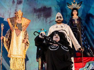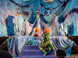 E proprio come in un collage, lo spettacolo gioca, anche con la partecipazione del pubblico, su incontri, scontri, dialoghi e contrasti tra i personaggi piu' amati dell'immaginario luzzatiano: tra il mondo in bianco e nero dello strabordante Padre Ubu e il mondo a colori del delicato Tamino, tra la dolce poesia della Regina della Notte e lo spirito dissacrante di Pulcinella.