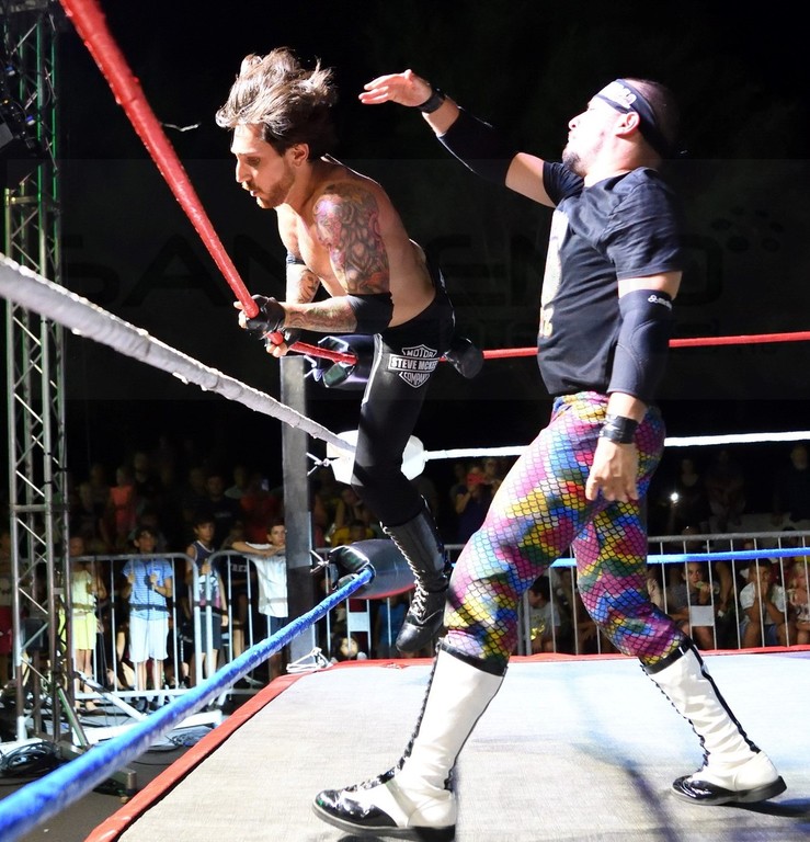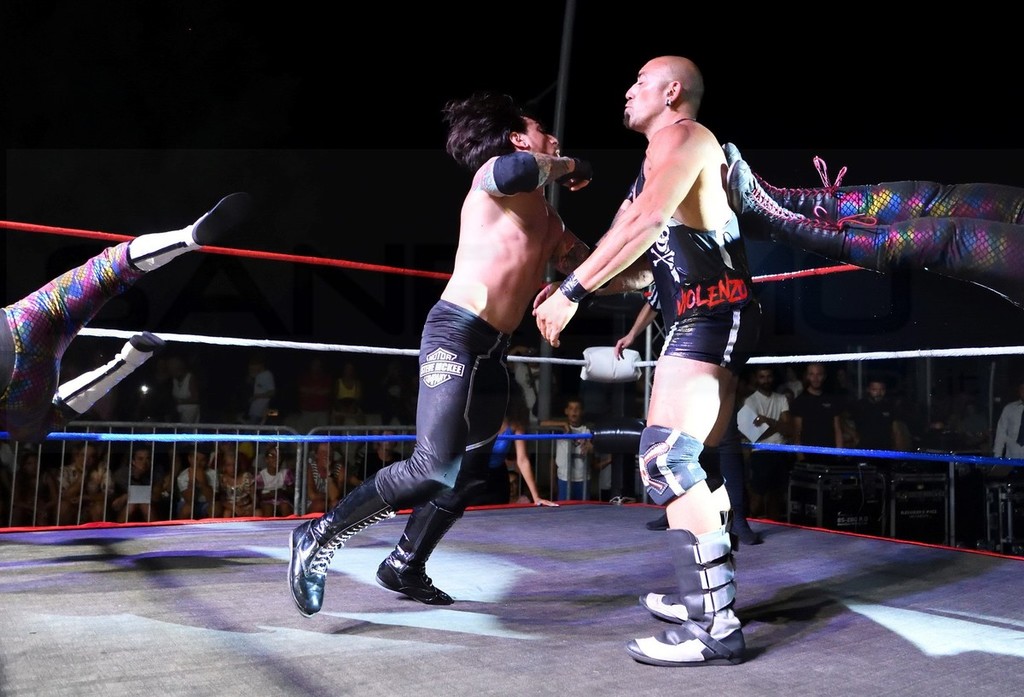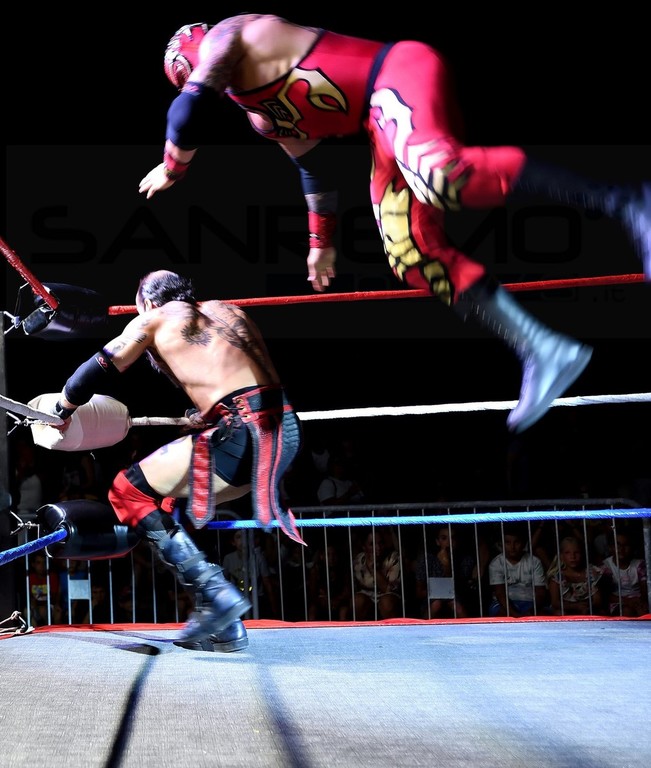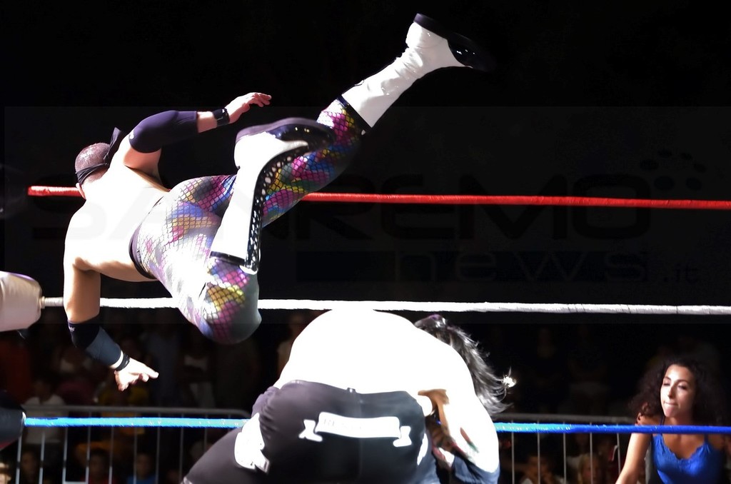 Piazza Ughetto letteralmente 'invasa', ieri sera per la grande notte del Wrestling professionistico a Riva Ligure. Alcuni tra i lottatori di maggior rilievo internazionale si sono dati battaglia sul ring a colpi di dropkick e bodyslam.