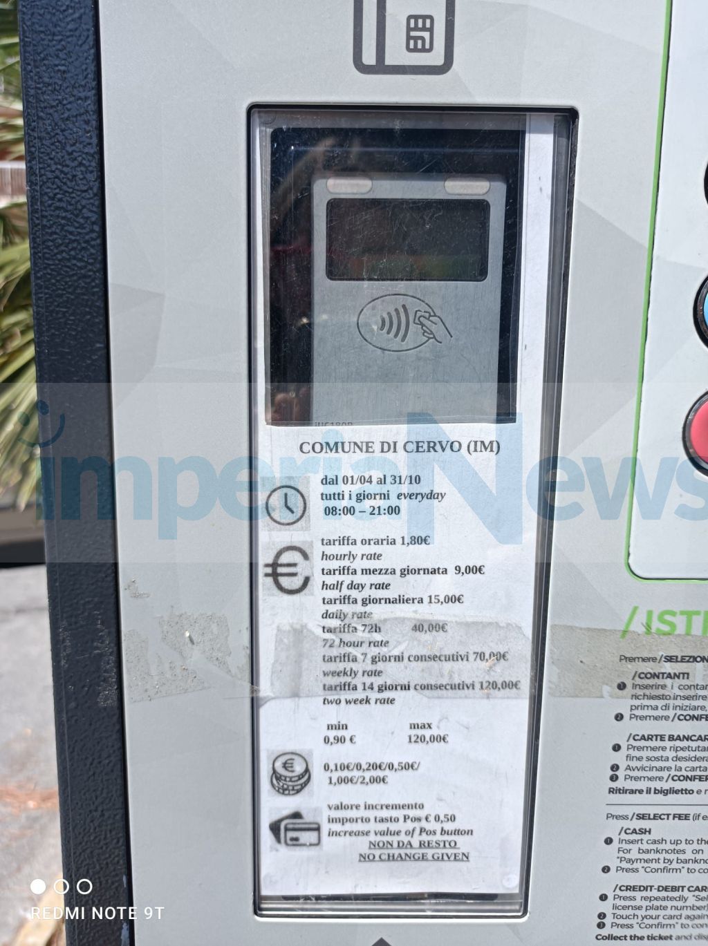 “Valore incremento tasto Pos €0,50”: questa scritta riportata sui vari parcometri cittadini ha gettato nel panico turisti e residenti di Cervo. Dopo il clamore suscitato in tutta Italia dalla gelateria di Sanremo che aveva affisso un cartello in cui si informavano i clienti dell’aumento di 50 centesimi, al costo di coni e coppette se si voleva pagare con bancomat o carta di credito, dal piccolo borgo del dianese sono giunte diverse segnalazioni per un presunto trattamento discriminatorio, e anche contrario alla legge, nei confronti di chi voleva pagare la sosta attraverso i circuiti elettronici.