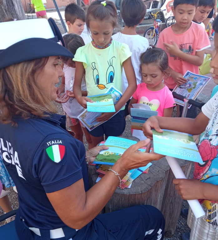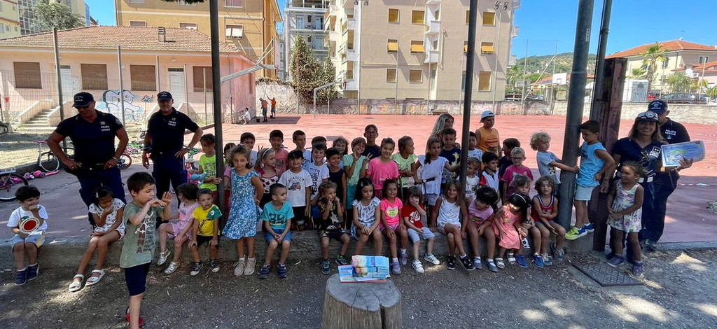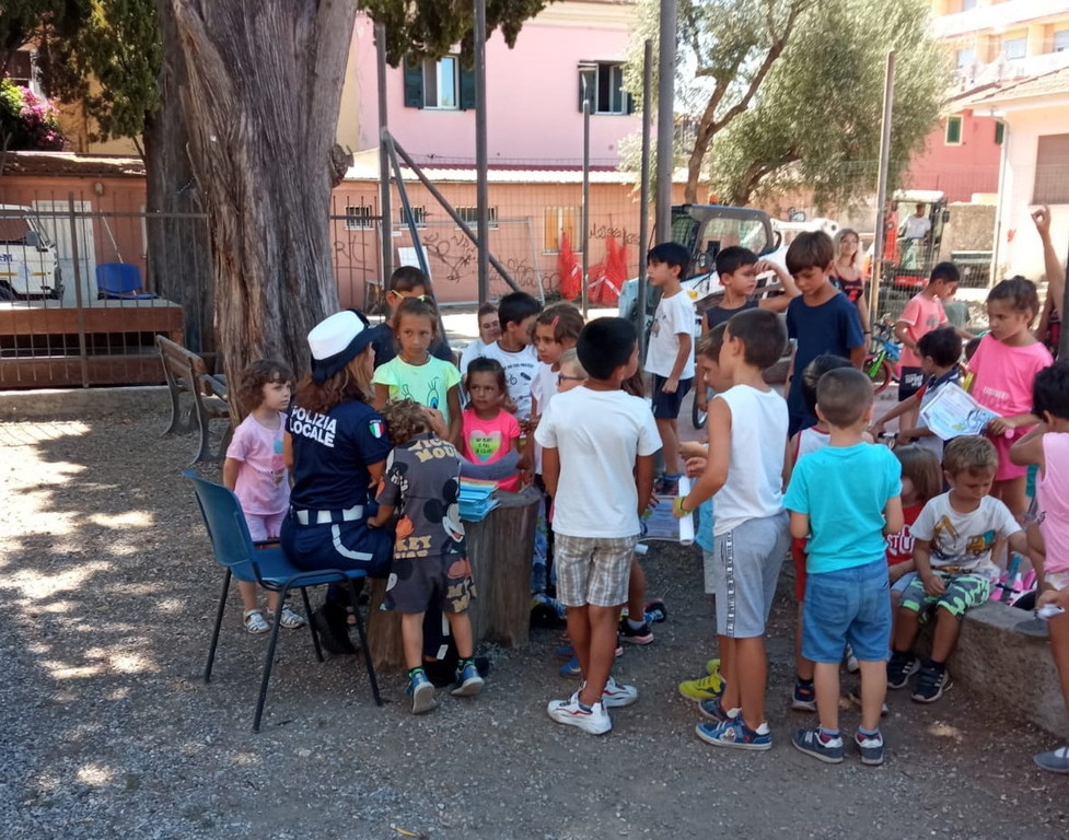 Ieri mattina la Polizia Locale di Diano Marina ha tenuto presso la scuola estiva di Villa Scarsella, un incontro con i bambini in tema di ambiente ed educazione stradale. Sono intervenuti i Sovrintendenti Zeccola e Risso, il Commissario Frisenna e la Comandante Gavi.
