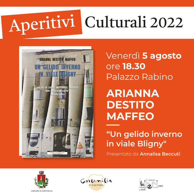 La prossima occasione è fissata per venerdì 5 agosto a Palazzo Rabino, dove alle 18.30 saranno presentati due volumi: “Un gelido inverno in viale Bligny” di Arianna Destito Maffeo, presentato da Annalisa Beccuti, e “Nel tempo sbagliato” di Bruno Morchio, presentato da Renata Barberis.