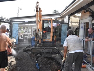Dovrebbe terminare questa sera, o al più tardi domani mattina, il lavoro di sistemazione della condotta primaria del Roya iniziato questa mattina (QUI) intorno alle 5 in corso Nazario Sauro, sul dehors del bar Max.