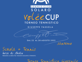 Si ricorda che sono aperte le iscrizioni al “Torneo Tennistico Giovanile con Borsa di studio Volée Cup”. Giunto alla sesta edizione, il Torneo evoca la figura di Pino Fassola, fondatore del Tennis Club Solaro e del Resort Solaro Sporting Club.