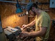 Il segantino non va confuso con il falegname. Mimmo e Danilo trattano la radica, questa sorta di radice ottenuta da alcune piante che viene procacciata e portata in questa bottega un po' da tutta Europa. La loro maestria consiste nel prendere questi ciocchi di legna grezza e capire come tagliarli, per scartarne il meno possibile e valorizzare il prodotto che viene ridotto in singoli pezzi per poi essere trattato e infine venduto alle aziende che in tutto il mondo sfruttano questo legno di pregio.