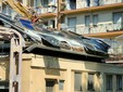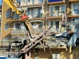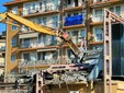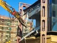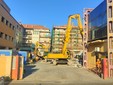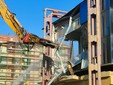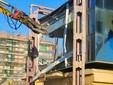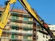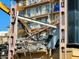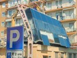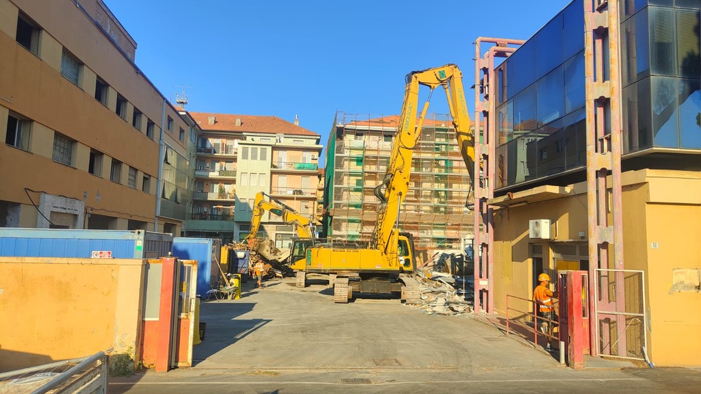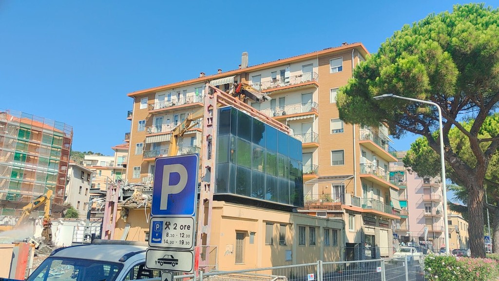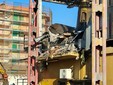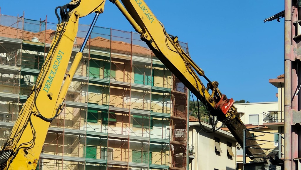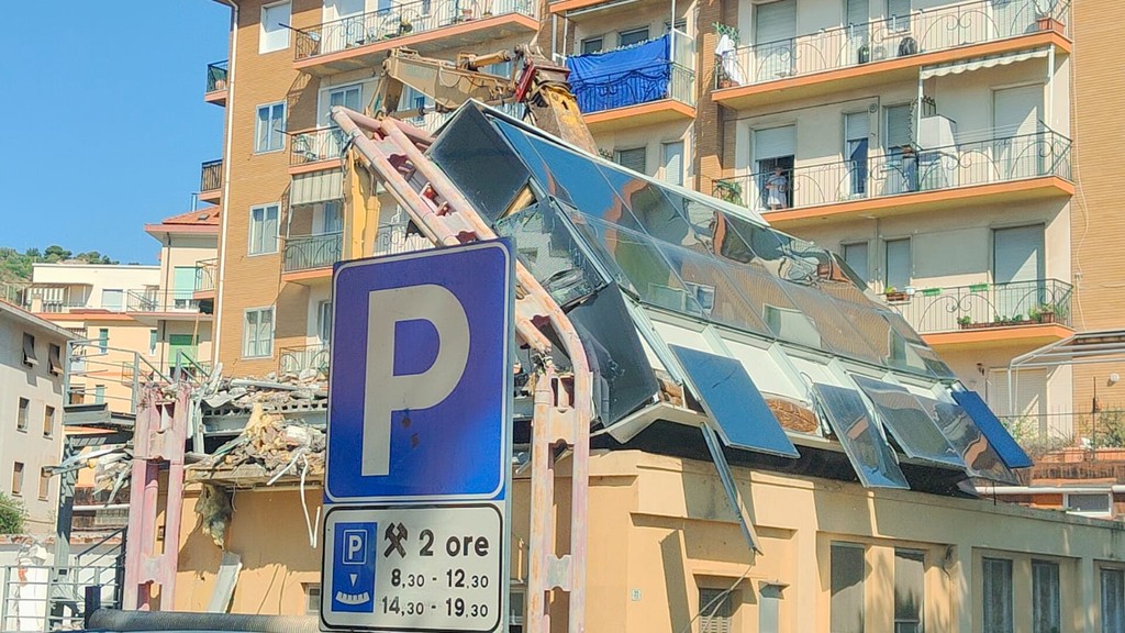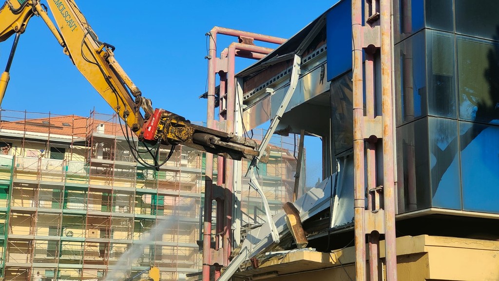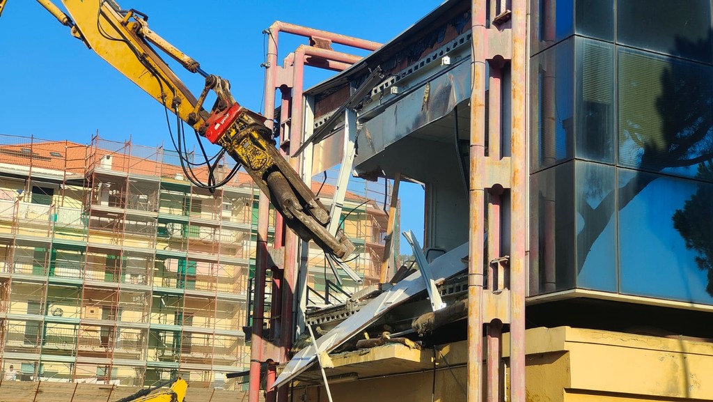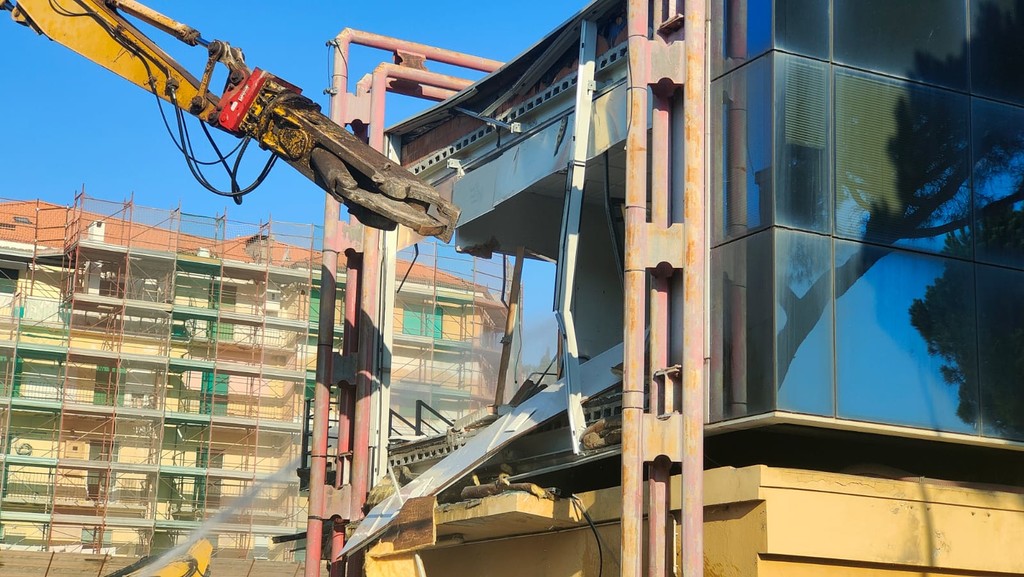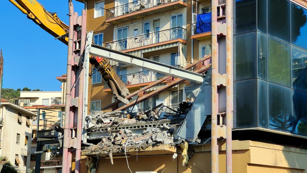 La benna ha terminato l’abbattimento della palazzina in vetro. Traffico deviato