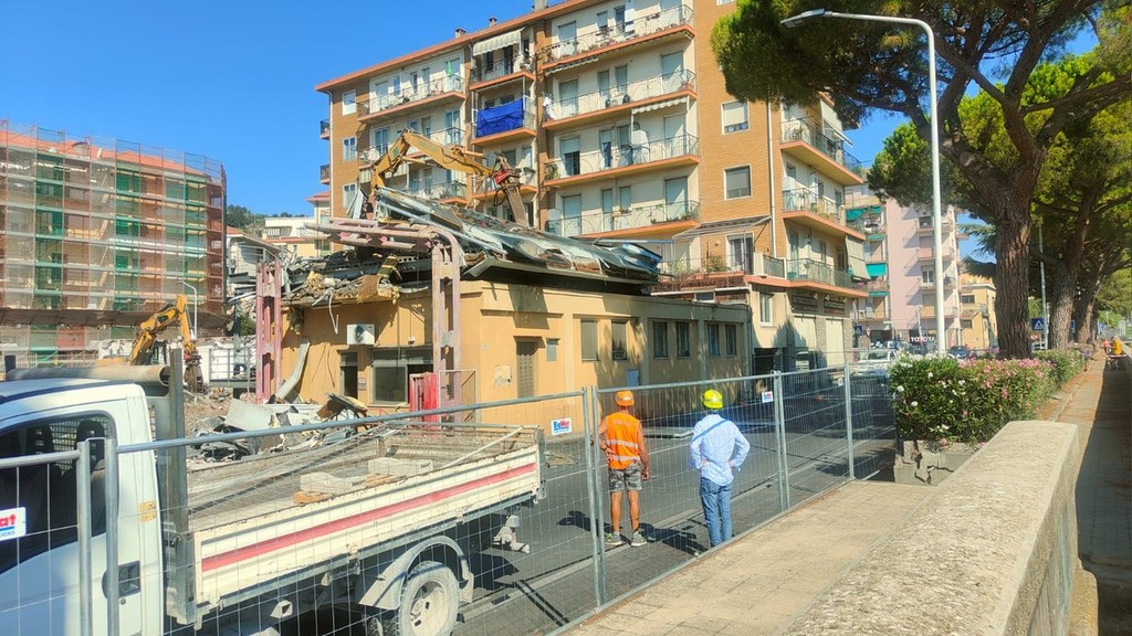 Imperia, demolizione ex caserma Vvf per lo spreco d’acqua. La replica: “La usiamo solo per i calcinacci, condotta non comunale” (Foto e Video)