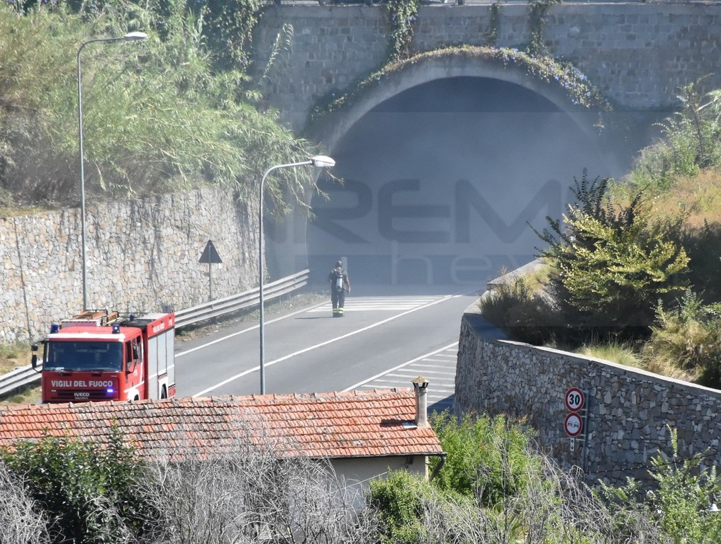 Un probabile corto circuito a una lampada dell’impianto di illuminazione, ha provocato un incendio nella galleria dell’Aurelia Bis all’uscita del quartiere del Borgo a Sanremo.