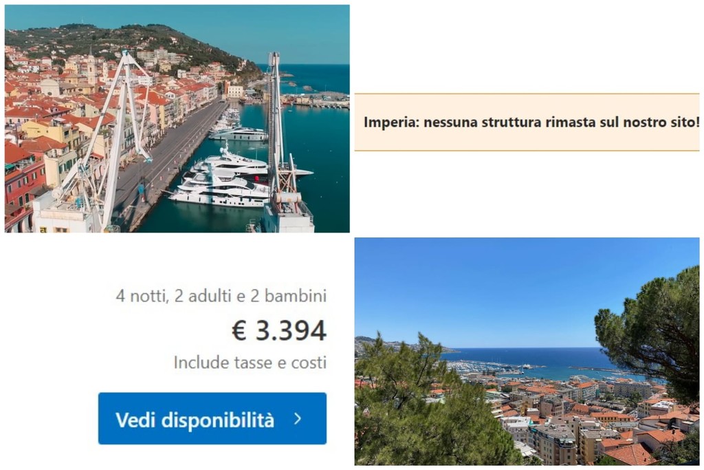 A San Lorenzo al Mare, Riva Ligure, Arma di Taggia, Ospedaletti, Bordighera e Ventimiglia non c'è invece, neanche una camera libera: è tutto al completo. Chi effettua una ricerca, ad esempio, per Arma di Taggia si ritrova la proposta della struttura più vicina ossia un appartamento a Castellaro a 903 euro mentre chi chiede disponibilità per Ventimiglia si ritrova l'opzione di San Biagio della Cima dove è presente un appartamento a 2.862 euro.
