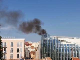 Incendio sul tetto del cinema in costruzione ad Antibes in rue Lancan: spento dai vigili del fuoco (foto e video)