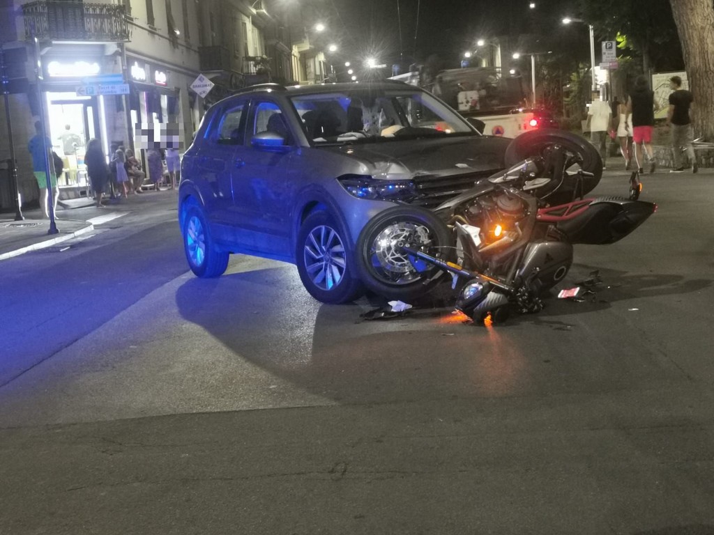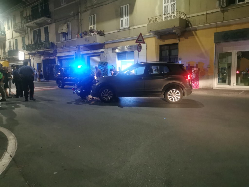 Incidente stradale ieri sera, poco prima della mezzanotte, ad Arma di Taggia all'incrocio tra via Boselli e via Queirolo. Il sinistro ha visto coinvolti un'auto e una moto.