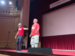 Ieri a Sanremo, Teatro del Casinò pieno per il duo comico Ceccon & Balbotin.I famosi esponenti della scuola ligure hanno portato in scena “Ci sono più trappole che topi” per la rassegna “Unoenergy accende la tua estate”. Lo spettacolo inizialmente previsto all'aperto a Pian di Nave, nel pomeriggio è stato spostato di location a causa del maltempo.