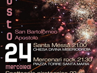 Mercoledì 24 agosto torneranno anche i tradizionali fuochi d'artificio sul Lungomare delle Nazioni, previsti per le ore 23.15. Prima dello spettacolo pirotecnico, in piazza Torre Santa Maria suoneranno i Mercenari Rock, cover band imperiese nota e apprezzata dal pubblico di tutta la provincia e non solo.