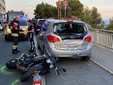 Sanremo: perde il controllo della moto e si schianta contro un'auto posteggiata (foto)
