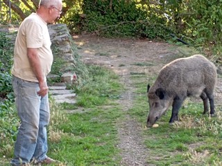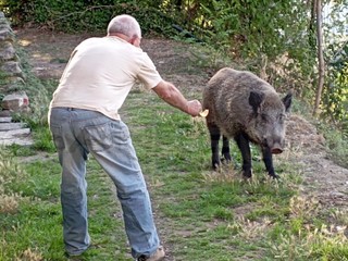 Bajardo: cinghiali a 10 metri dal paese, eccoli mentre ricevono il cibo dalle mani dell'uomo (Foto)