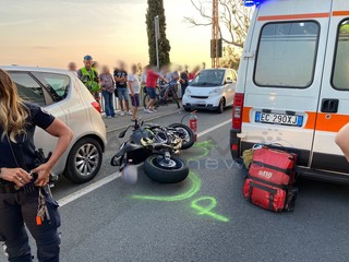 Sanremo: perde il controllo della moto e si schianta contro un'auto posteggiata (foto)