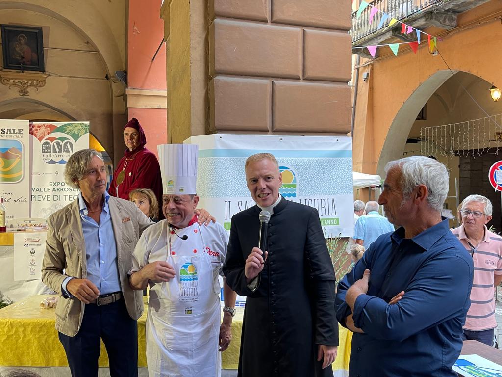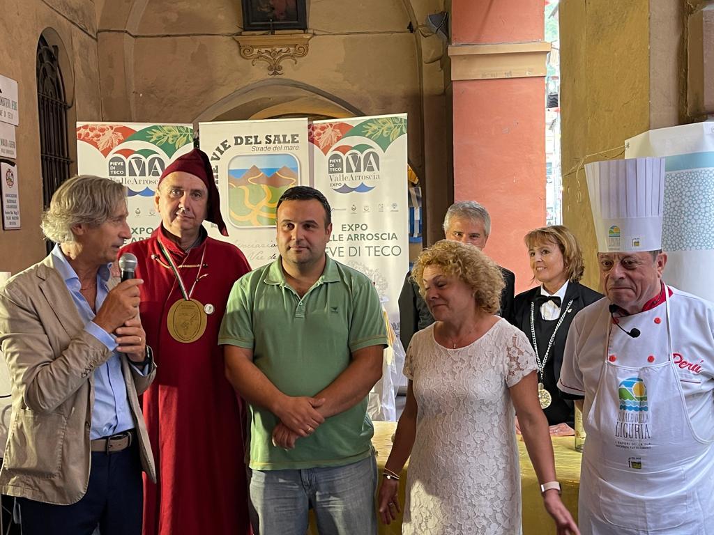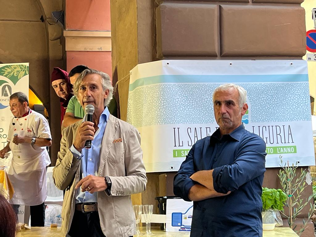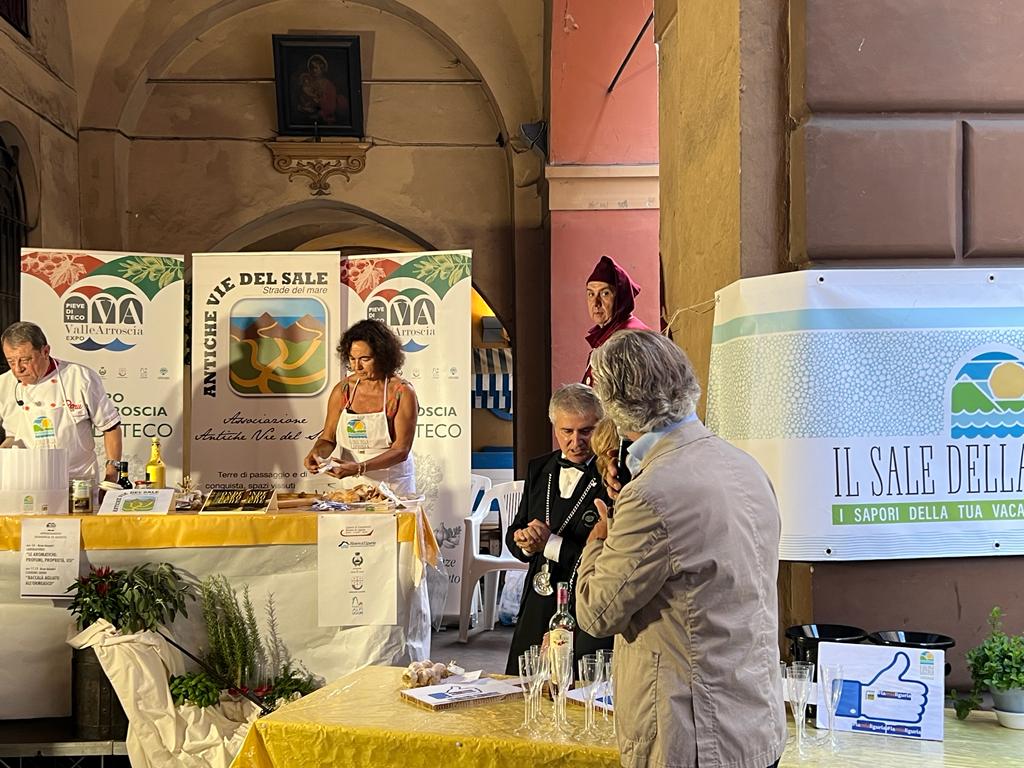 Lo chef Renato Grasso, il sommelier Augusto Manfredi membro della Confraternita dell’Ormeasco e Andrea Ferrari del comitato di tutela dell’Aglio di Vessalico, con il “baccalà agliato all’Ormeasco” hanno chiuso i percorsi sensoriali del “sale della Liguria” celebrando due prodotti testimonial del territorio, come vengono definite quelle eccellenze che trasformano i luoghi di produzione in brand.