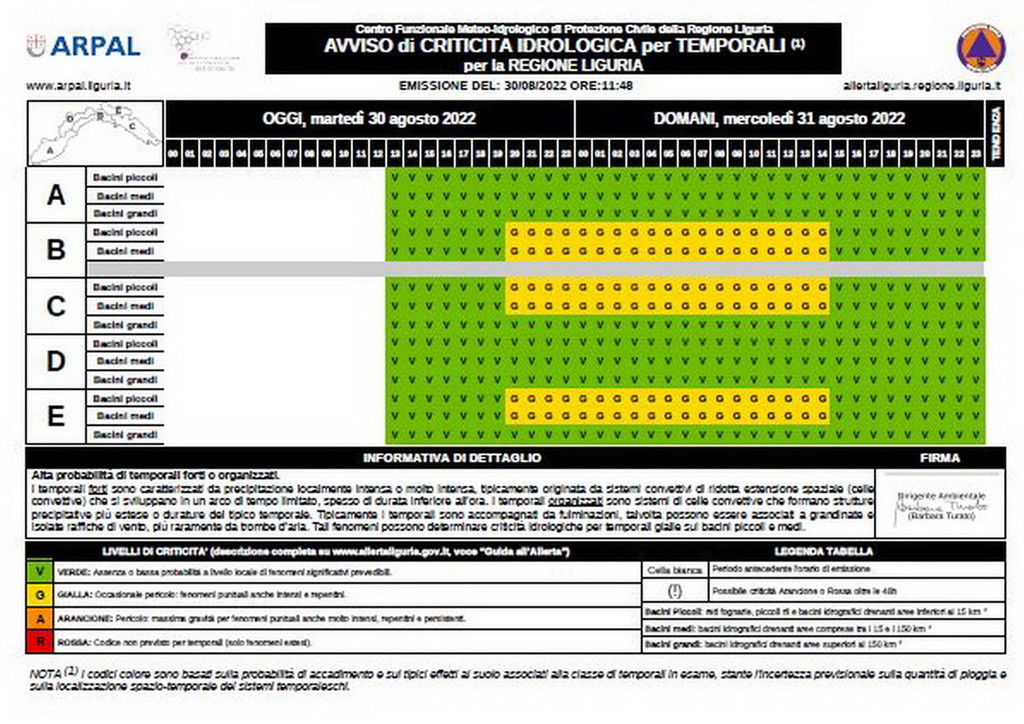 Scatta l’allerta gialla per temporali ma non per la nostra provincia, visto che sul ponente permane una bassa probabilità di episodi forti, che potranno iniziare già dal pomeriggio.