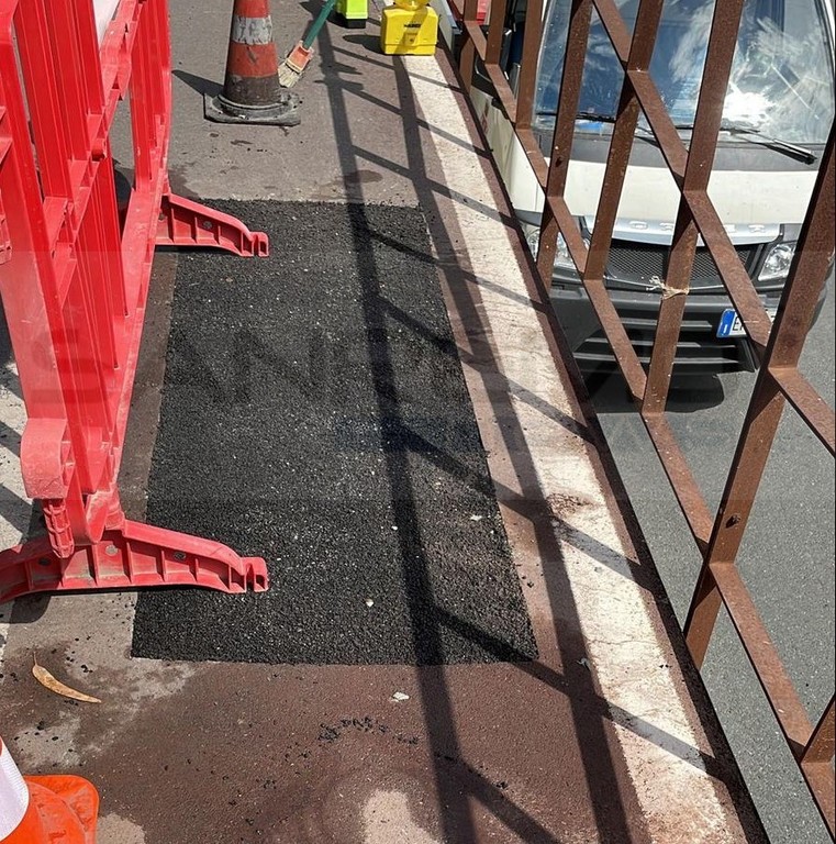Pronto intervento, da parte dell’Amministrazione e degli operai del Comune di Camporosso, per una buca che si era creata sulla pista ciclopedonale di Camporosso Mare.