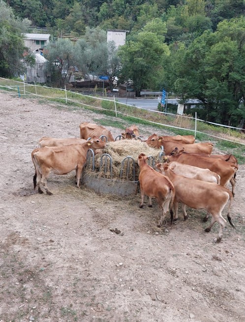 “Per realizzare il nostro progetto abbiamo selezionato una stalla qui a Pieve di Teco. L’abbiamo scelta, evidenzia, sia per la territorialità in quanto volevamo rimanere vicino al nostro comprensorio, noi siamo di Imperia, e quindi essere in altura ma vicino alla nostra zona, sia per la logistica perché è una zona che aiuta moltissimo in quanto vicina agli sbocchi autostradali e alla statale 28. L’abbiamo scelta anche per la suggestione del posto in quanto è inserita su un piccolo pianoro al fondo di una montagna composta principalmente da castagneti e uliveti con un panorama bellissimo. Le nostre vacche sono allevate principalmente all’esterno e quindi possono rientrare, quando c’è troppo caldo o piove, all’interno della stalla che quindi rimane sempre aperta, ma tendenzialmente vivono all’esterno”.