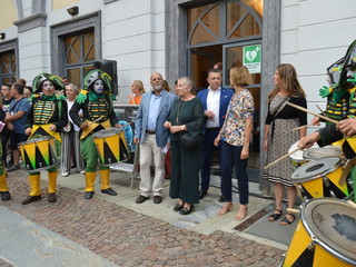 Il taglio del nastro ufficiale si è poi tenuto alle 18.30 nella piazza antistante il teatro Toselli, alla presenza di Gavosto, la sindaca di Cuneo Patrizia Manassero e l'intera giunta, la parlamentare Chiara Gribaudo, Luca Chiapella di Confcommercio Cuneo, Giorgio Chiesa di WeCuneo, Elio Parola di Baladin, Daniela Salvestrin dell'ATL del Cuneese, Beppe Carlevaris di VisitPiemonte e Lucia Rosso, assessore del Comune di Busca."Bello che Mirabilia torni ancora a Cuneo, in un'edizione più libera di allargarsi, espandersi e muoversi - ha detto la sindaca - . La città è pronta ad accogliere l'evento con i suoi colori, le sue meraviglie e anche la sua 'follia'".