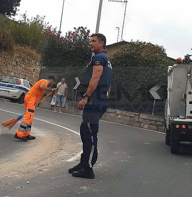 Gli agenti hanno agevolato l'operatore nelle operazioni di pulizia proteggendolo dal transito dei veicoli.