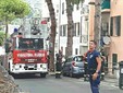 Gli agenti hanno chiuso la via a veicoli e pedoni per permettere ai pompieri, con l'ausilio dell'autoscala, di mettere in sicurezza i pini marittimi pericolosi.
