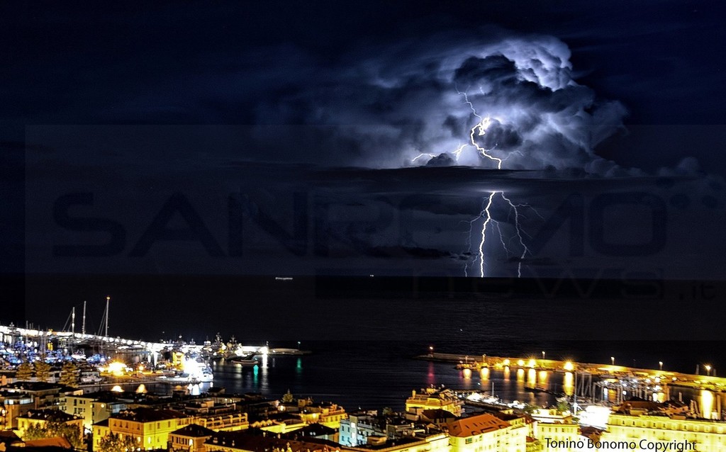 Le immagini sono particolarmente suggestive e confermano la presenza di piccole perturbazioni a largo di Sanremo, come avvenuto anche di fronte ad altre città della nostra provincia.