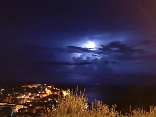 Poca pioggia nonostante l’allerta gialla prolungata, ma tempesta di fulmini nel cielo di Imperia e Diano (foto e video)