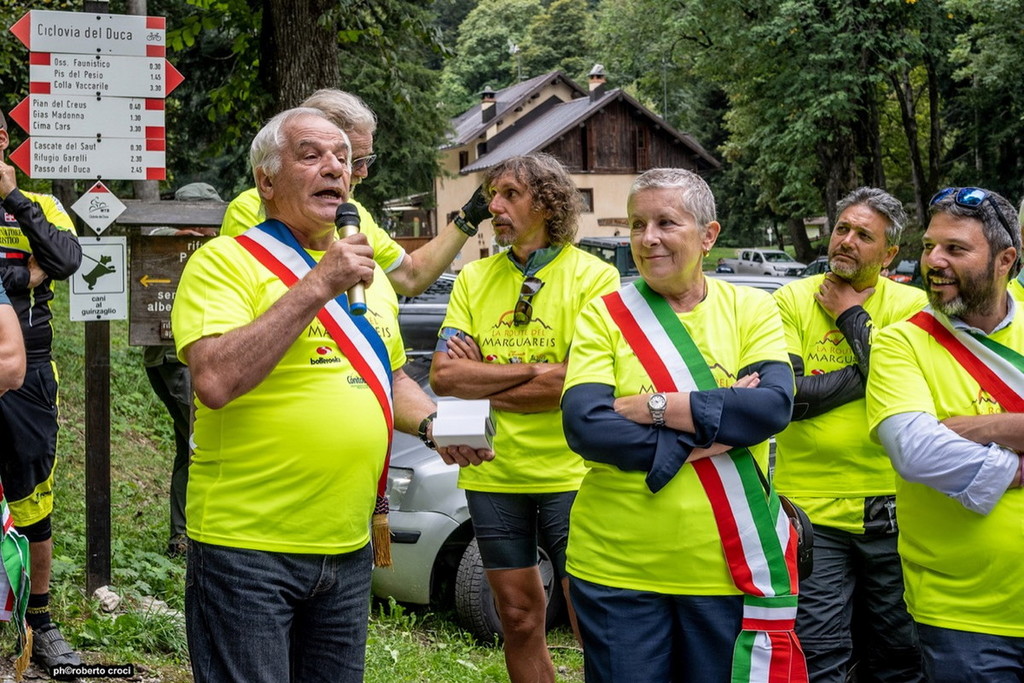 A fare gli onori di casa, il presidente delle Aree Protette delle Alpi Marittime Piermario Giordano insieme al direttore Luca Gautero, il presidente di VisitPiemonte DMO nonché presidente del Consorzio Conitours Beppe Carlevaris, i sindaci e gli amministratori di Tenda, Cuneo, Chiusa di Pesio, Roburent, Frabosa Soprana, Peveragno, Valdieri, Roccaforte Mondovì, Magliano Alpi e Morozzo insieme al consigliere della Fondazione CRC Massimo Gula. In rappresentanza della Regione ha presenziato l’ingegner Stefania Crotta, direttore del Settore Ambiente e Parchi. Presenti anche Lionello Savasta Fiore, figlio dell’ingegnere che negli anni ’30 realizzò la strada, e l’amico Giovanni Panzera, nominato dall'Atl del Cuneese ambasciatore del cicloturismo cuneese nel mondo.