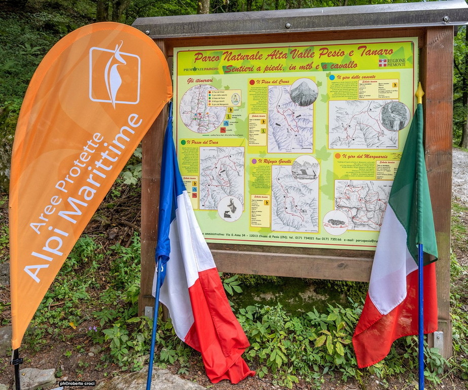 A fare da cornire al taglio del nastro italo-francese, i partecipanti alla quarta edizione della Route del Marguareis organizzata dal Consorzio Conitours e promossa dall’ATL del Cuneese. Nell’occasione sono stati inaugurati i nuovi cartelli di accoglienza e informazione sulla Ciclovia realizzati dall’ATL del Cuneese.