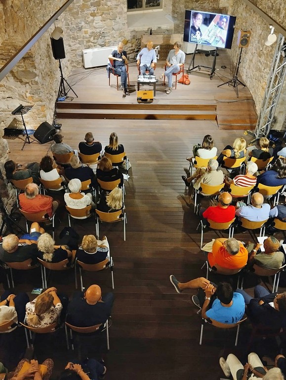 Che il paesaggio sia motore di storie appassionanti lo ha dimostrato anche il reading Quando sono lontano da te, mare, io ti vedo, con Laura Curino, interprete fra le più sensibili della scena italiana e il fisarmonicista Julyo Fortunato. Nella voce della Curino hanno trovato un nuovo respiro le pagine di Italo Calvino (“la salita col suo rosario di immagini” de La strada di San Giovanni) e Francesco Biamonti (“il mare, che laggiù si dorava dopo tanto sole” di Vento largo), ma anche le poesie di Giuseppe Conte, seduto fra il pubblico, e Giorgio Caproni, versi che hanno restituito tutta la struggente bellezza della Liguria.