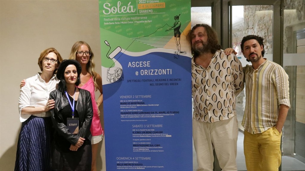 Ancora un’ascesa per la giornata conclusiva di domenica 4 settembre. Gli attori e musicisti Davide Lorino ed Elisabetta Mazzullo, in arte BetteDavis, sono tornati a Soleá per dare vita a Mille metri di vuoto, performance dedicata alla poesia di Antonia Pozzi, “anima di eccezionale purezza e sensibilità” nelle parole di Eugenio Montale, cantrice della vita e dei suoi tormenti che trovava rifugio e pace nella montagna. Lo spettacolo, presentato a Sanremo in prima nazionale, ha origine nel volume L'Antonia. Poesie, lettere e fotografie di Antonia Pozzi scelte e raccontate da Paolo Cognetti, Premio Strega 2017 per il celebre Le otto montagne. Intersecando i versi della Pozzi e i commenti di Cognetti, le parole dei due narratori e le musiche composte per lo spettacolo, Davide Lorino ed Elisabetta Mazzullo hanno affascinato e commosso gli spettatori, rapiti dalla triste parabola della giovane poetessa e dalla brillante bellezza dei suoi versi.