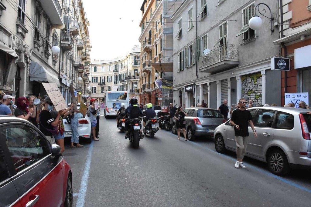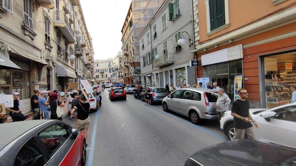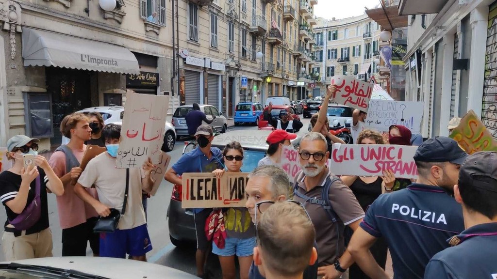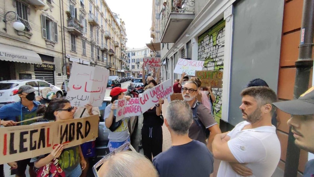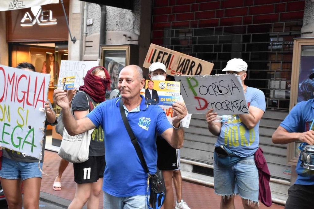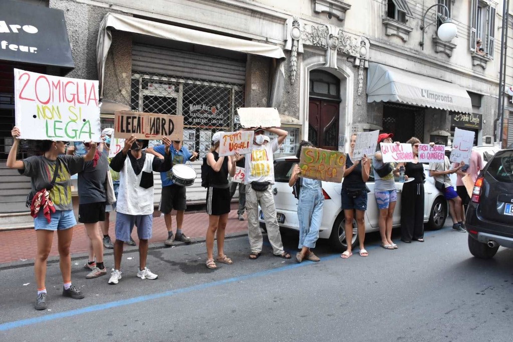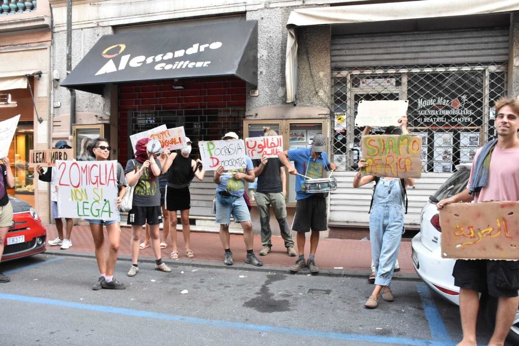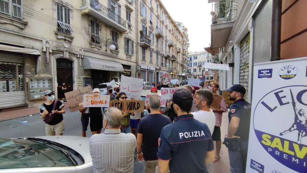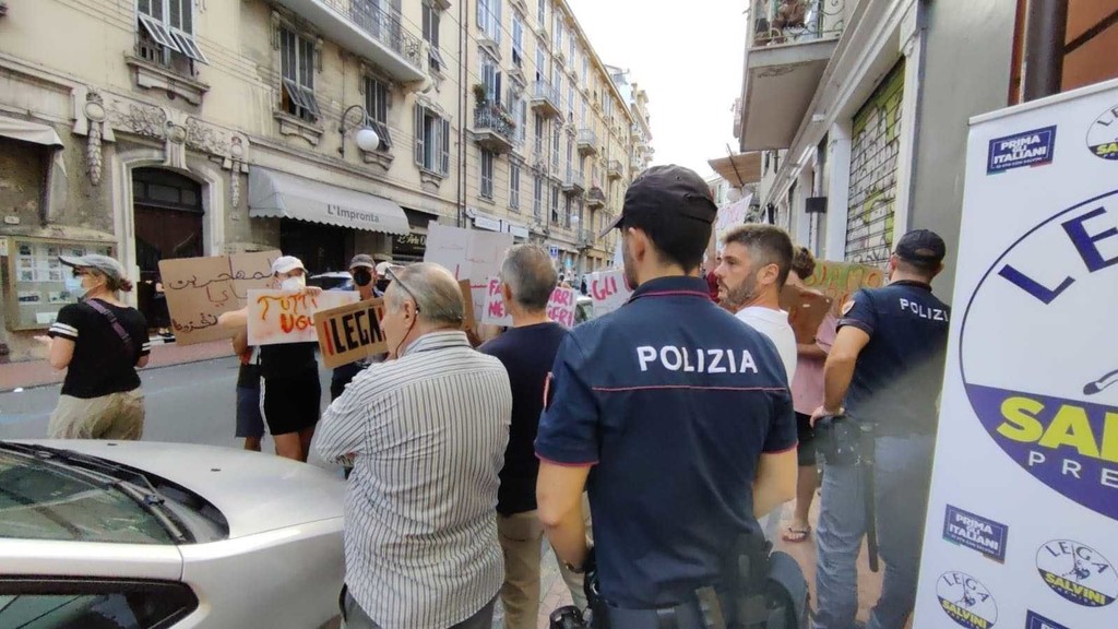Ventimiglia: la Lega apre il point in via Cavour, fuori si scatena la protesta (foto e video)