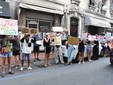 Alcuni attivisti si sono radunati davanti all'ufficio intonando esponendo cartelli e intonando cori