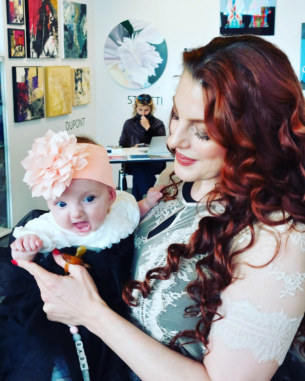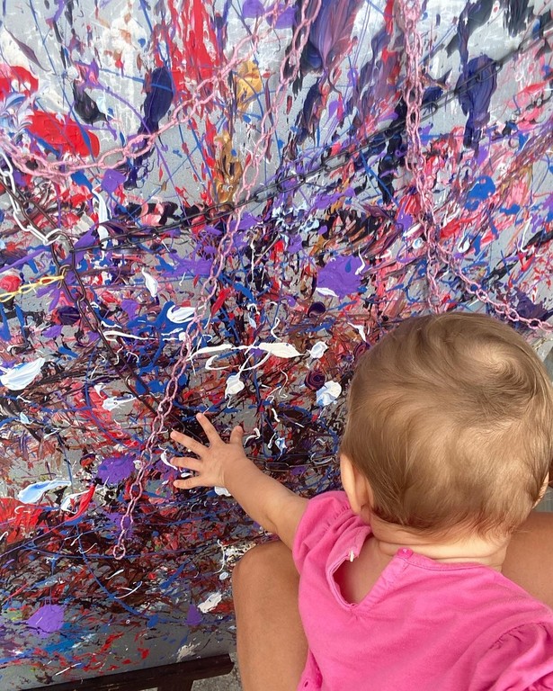 “La piccola Neve Diana - racconta Soraya Cordaro - durante la gravidanza, ha preso parte ad alcuni eventi a Varese, sono stata coinvolta dalla curatrice Carla Tocchetti per una performance di danza e action painting per L’inferno Dantesco dei Damss Art, una narrazione in fiber art, rappresentando alcuni personaggi dell’Inferno introdotti dal poeta Silvio Raffo. (2021, realizzato in collaborazione con Joan Josep Barcelo). Successivamente con la rassegna internazionale di poesia, Voci per voi, con un mio omaggio alla maternità, riproposto per Panorama International Literature Festival 2022. Le nostre anime comunicano dal primo istante e credo che tra i colori delle tele realizzate ci siano tracce di lei- continua Soraya. Ricordo l’entusiasmo con cui ho realizzato i vernissage Cages (2017), E v a S A (2019), Paradise Lost (2021), Segnalibro D’artista, Omaggio al libro, (collettive alla libreria Bocca di Milano, 2019,2021) resto curiosa e stupita della possibilità di abitare i colori per qualche istante e lì restare sospesa, grata di questa avventura, che coinvolge anche lei, dopo il primo passo a due ad ArteGenova, per me così emozionante, ora le sue orme sono tangibili, come la piccola tela che ha creato durante il concorso di pittura estemporanea (pittura da ascoltare, suoni da guardare) che si è tenuto nella pigna di Sanremo, il 19 agosto, all’età di nove mesi. Durante i laboratori che ho proposto in questi anni con il progetto funamboli tra le stelle, molti bambini hanno incontrato personaggi della mia fiaba e i colori attraverso attività di impronta Montessoriana e Steineriana. Ora anche Neve potrà esprimersi nel suo essere, con libertà, in questa realtà magica.La nostra avventura insieme continua”.