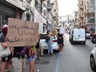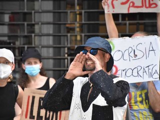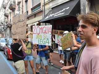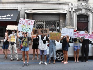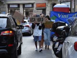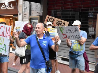 Alcuni attivisti si sono radunati davanti all'ufficio intonando esponendo cartelli e intonando cori