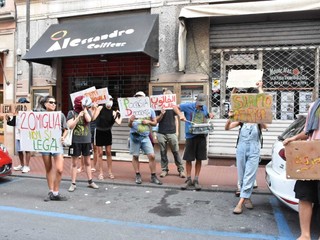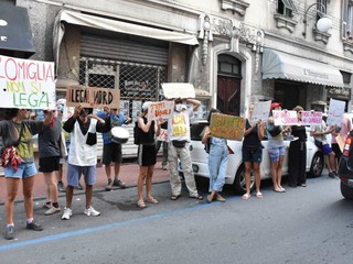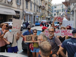 Ventimiglia: la Lega apre il point in via Cavour, fuori si scatena la protesta (foto e video)