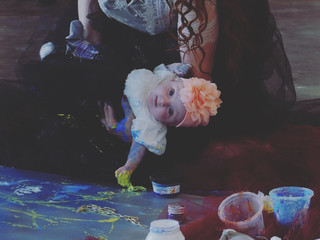 “La piccola Neve Diana - racconta Soraya Cordaro - durante la gravidanza, ha preso parte ad alcuni eventi a Varese, sono stata coinvolta dalla curatrice Carla Tocchetti per una performance di danza e action painting per L’inferno Dantesco dei Damss Art, una narrazione in fiber art, rappresentando alcuni personaggi dell’Inferno introdotti dal poeta Silvio Raffo. (2021, realizzato in collaborazione con Joan Josep Barcelo). Successivamente con la rassegna internazionale di poesia, Voci per voi, con un mio omaggio alla maternità, riproposto per Panorama International Literature Festival 2022. Le nostre anime comunicano dal primo istante e credo che tra i colori delle tele realizzate ci siano tracce di lei- continua Soraya. Ricordo l’entusiasmo con cui ho realizzato i vernissage Cages (2017), E v a S A (2019), Paradise Lost (2021), Segnalibro D’artista, Omaggio al libro, (collettive alla libreria Bocca di Milano, 2019,2021) resto curiosa e stupita della possibilità di abitare i colori per qualche istante e lì restare sospesa, grata di questa avventura, che coinvolge anche lei, dopo il primo passo a due ad ArteGenova, per me così emozionante, ora le sue orme sono tangibili, come la piccola tela che ha creato durante il concorso di pittura estemporanea (pittura da ascoltare, suoni da guardare) che si è tenuto nella pigna di Sanremo, il 19 agosto, all’età di nove mesi. Durante i laboratori che ho proposto in questi anni con il progetto funamboli tra le stelle, molti bambini hanno incontrato personaggi della mia fiaba e i colori attraverso attività di impronta Montessoriana e Steineriana. Ora anche Neve potrà esprimersi nel suo essere, con libertà, in questa realtà magica.La nostra avventura insieme continua”.