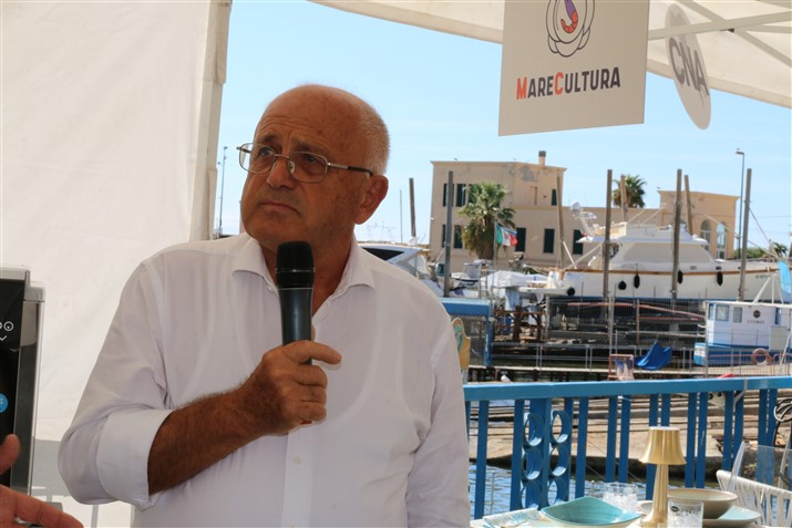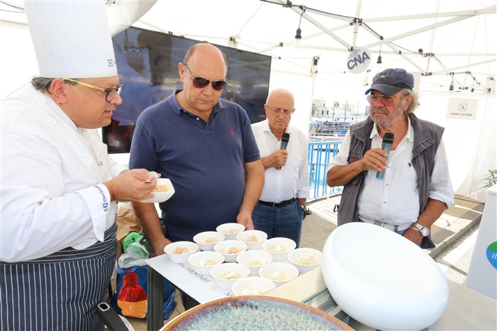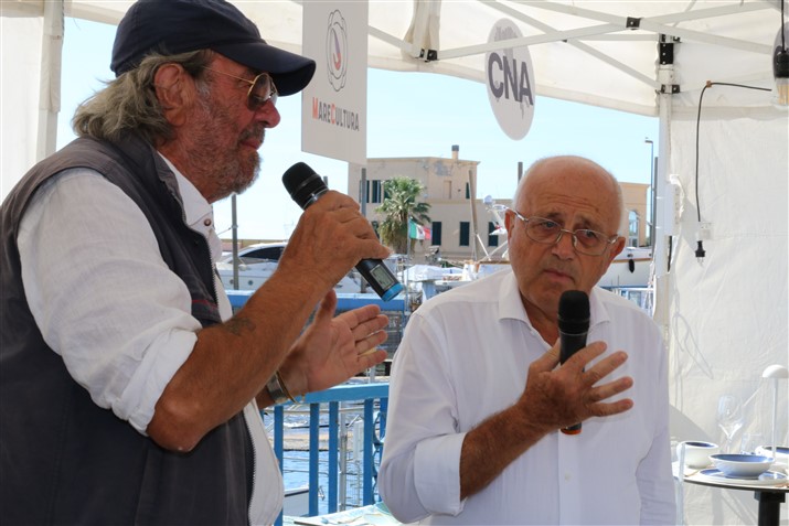 Applausi per l'intervento di Russello Vincenzo, console del mare 2022 e sua figlia Giulia, per Roberto Pisani con lo chef Roberto Verta e lo scrittore Ugo Carelli.