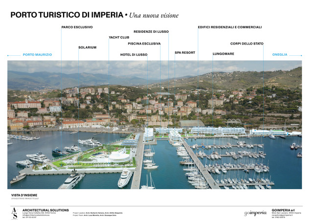 Il progetto sarà esposto attraverso video, foto e diversi rendering del futuro Porto di Imperia, approdo turistico nel quale, dal 2019, sventola la Bandiera Blu garanzia di qualità ambientale ed elevati standard di servizi all'utente. Questa visione disegna un "nuovo" porto per un'Imperia rivolta al futuro nell'obbiettivo di potenziare il settore nautico, il turismo e conseguentemente creare nuovi posti di lavoro e un importante indotto per l'intera città.