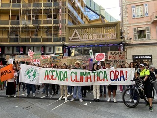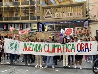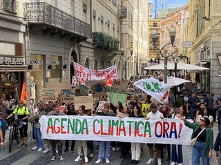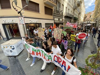 Il corteo radunato in piazza si è poi snodato per le vie del centro portando striscioni e slogan a favore del pianeta e per un futuro più attento alle tematiche ambientali.