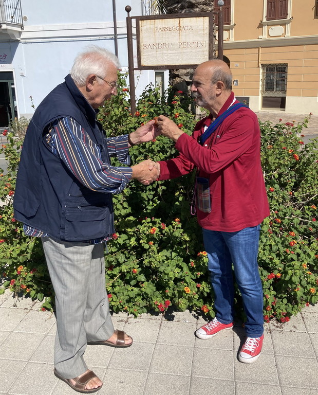 Momenti speciali che ancora oggi Eraldo ricorda bene, compresa quella giornata storica in cui malgrado la piazza di un paesino dell’entroterra fosse vuota, Pertini non rinunciò al suo appassionato comizio a favore del suo partito. Per commemorare questa speciale giornata la Atape ha voluto organizzare l’incontro tra Crespi e Voltolina in un luogo simbolo, il tratto di pista ciclabile del Ponente ligure o ‘passeggiata Sandro Pertini’ di Ospedaletti, inaugurata nel 2013 dal sindaco di allora Eraldo Crespi.