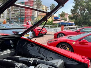 Un pomeriggio tinto di rosso Ferrari a Ventimiglia. Sul Resentello si sono date appuntamento 24 prestigiose automobili in arrivo dall’Olanda per il raduno organizzato dal ristorante Marco Polo dello chef Diego Pani con il patrocinio del Comune di Ventimiglia. Tanti i curiosi e gli avventori che hanno potuto godere dei mezzi arrivati in città prima della tappa finale a Montecarlo.