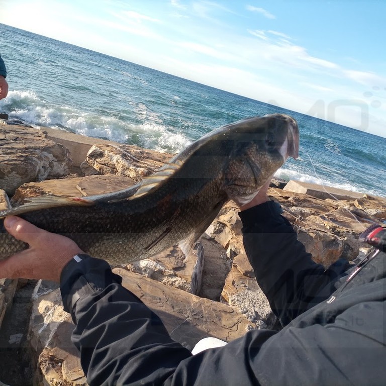 Sanremo: branzino di 8 kg pescato questa mattina con la canna dalla scogliera di Pian di Nave (Foto)