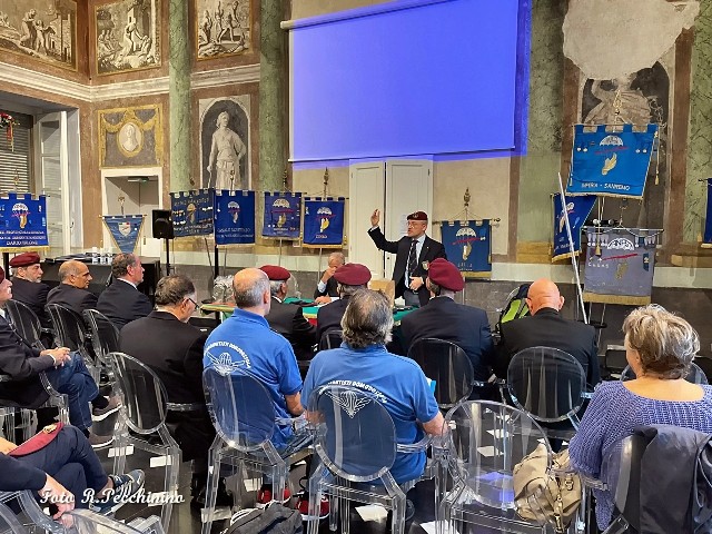 Relatore l'avv. Alberto Benatti (segretario tecnico di tutte le scuole di paracadutismo d'Italia). Presente anche il vice-sindaco Assessore Costanza Pireri che ha portato il saluto e la soddisfazione del Sindaco e dell'amministrazione per l'importante incontro organizzato a Sanremo dall'ANPdI. Tra i vari argomenti, la ripresa dell'attività dei lanci dopo aver vinto la causa con l'ENAC e le prossime manifestazioni a Pisa il 21 ottobre per l'80° anniversario della battaglia di El Alamein e festa della specialità’ paracadutisti, organizzazione e partecipazione al raduno nazionale ANPd'I 2023 che si svolgerà as Asti il 23, 24 e 25 giugno 2023.