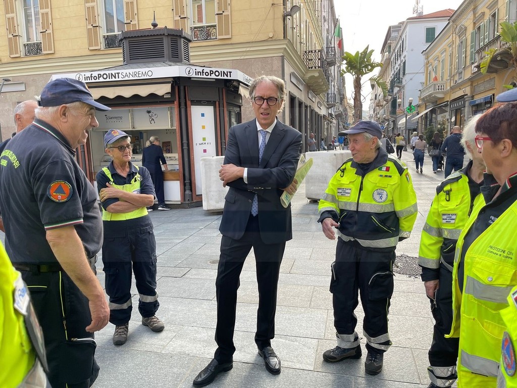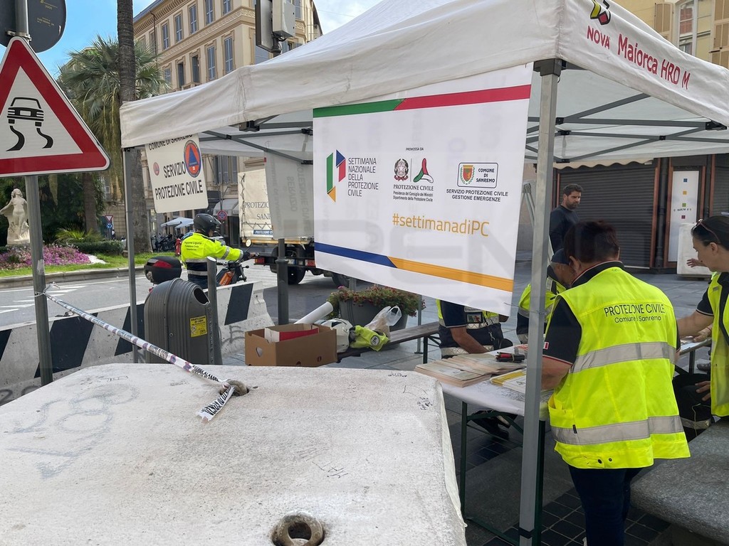 Sanremo: un gazebo della Protezione Civile per informare i cittadini sulle possibili allerte (Foto)
