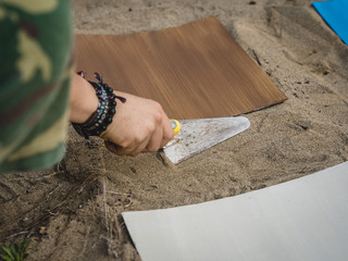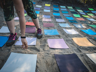 “Ho partecipato ad una call internazionale realizzata dal gruppo Clan e Accademia Mutamenti di Grosseto. Sono stati selezionati cinque artisti internazionali e cinque della regione Toscana che hanno presentato un progetto” - racconta la 28enne Ambra Scali parlando dell'installazione di LandArt ispirata al libro I Colori della Natura di Sasha Duerr - “Io ho presentato un progetto che consisteva nell’indagare sui colori della natura presenti nel parco della Maremma, tra questi ne ho scelti 100 che ho realizzato su tavolette di misura 30x30x1,2 cm, che ho collocato sul terreno in un quadrato che ha creato un insieme da 480x480 centimetri. La natura attraverso le stagioni ci riconnette ai reali ritmi della vita e ci permette di creare dei legami emotivi, fisici e ambientali con ciò che ci circonda. Attraverso i colori è possibile identificare la stagione in cui siamo. Sono stata fortunata visto che nei giorni che sono stata lì abbiamo visto sia giornate di tempo splendido, sia giornate di tempo bruttissimo e quindi ho potuto vedere, in una settimana, variazioni di colore incredibili. Attraverso il colore cerco di raccontare il luogo in cui catturo questi colori. La residenza è durata una settimana, ho allestito il mio progetto sabato e domenica il pubblico ha potuto vederlo insieme a tutte le altre installazioni o performance di altri miei colleghi. E' durata in pratica un giorno, poi è stata smontata e ora il lavoro verrà esposto nella sede del collettivo Clan dove presenteranno i progetti fatti nel 2022 al lido, cioè nella zona della Maremma”.