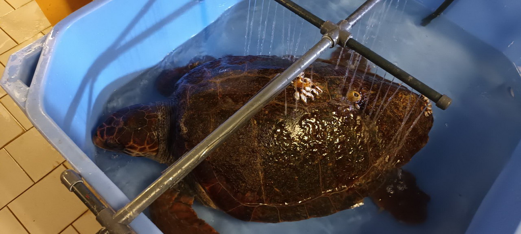 L’esemplare è stata battezzato 'Andrea' per ringraziare le due volontarie, una biologa dell’Associazione Delfini del Ponente e una diportista, che a turno hanno monitorato la tartaruga fino al mattino seguente quando è stato poi possibile trasferirla a Genova