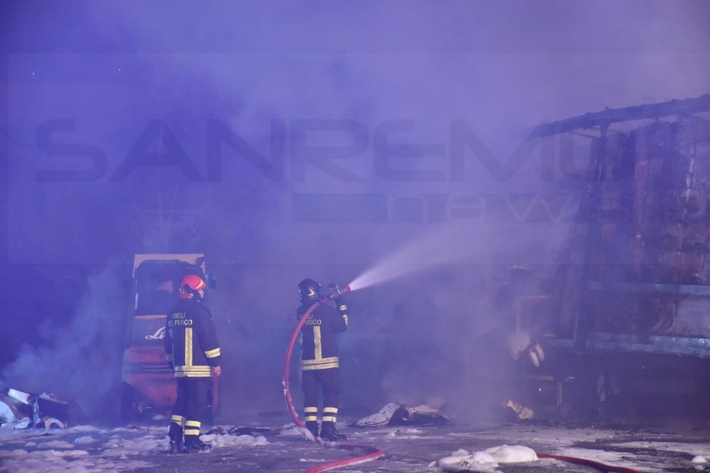 Taggia: terminate alle 4 le operazioni di bonifica dei Vigili del Fuoco per l'incendio di stanotte, indagini in corso (Foto e Video)